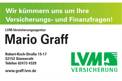 LVM-Versicherungsagentur Mario GraffDienstleistungenAdresse Robert-Koch-Str. 15-17 und Kirchstr. 10 52152 SimmerathKontakt aufnehmen 02473 4329 und 02473 9286218 info@graff.lvm.deWebseiteZur Webseite Zurück zur Übersicht